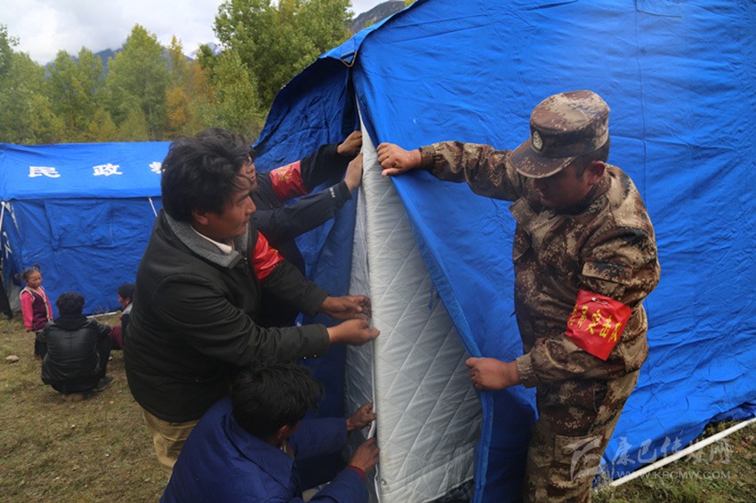 走進(jìn)炯青洞臨時(shí)安置點(diǎn)27號(hào)帳篷,見(jiàn)到村民康珠正在整理被蓋。她介紹說(shuō),縣里給每戶(hù)村民發(fā)了5床棉被,發(fā)放了礦泉水、方便面、餅干,發(fā)放了常用藥,還拉上了電,每天晚上能用上4個(gè)小時(shí)的電,我們睡了,還有黨員干部輪流值班。“黨和政府為我們想得很周到,讓我們吃得飽穿得暖還睡得安全?!?/p>