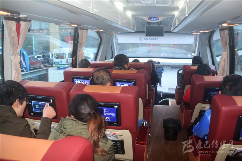 乘客乘坐首輛“黑金剛”超豪華大巴車的喜悅。