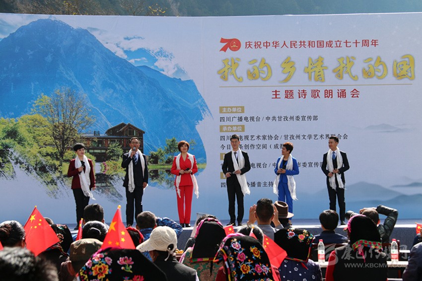本網(wǎng)訊 10月16日,由省廣播電視臺(tái)、州委宣傳部聯(lián)合主辦的“我的鄉(xiāng)情我的國(guó)”主題詩(shī)歌朗誦會(huì)在康定市孔玉鄉(xiāng)色龍村圓滿落幕。20多名省內(nèi)知名主持人和朗誦藝術(shù)家齊聚色龍村,以天為幕、地為臺(tái),通過(guò)朗誦、演唱、情景表演等藝術(shù)形式歌頌美麗富饒的甘孜,展示甘孜新時(shí)代鄉(xiāng)村振興的美好畫卷,講述新中國(guó)成立以來(lái)發(fā)生在蜀鄉(xiāng)大地上的故事,獻(xiàn)禮中華人民共和國(guó)成立70周年。