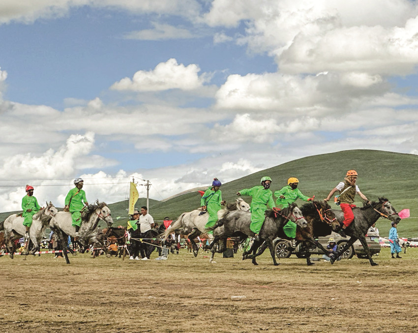 賽馬是藏族群眾娛樂生活的主要內(nèi)容,是極具特色的民俗活動,是藏族群眾對力量、勇敢、智慧的向往和崇拜,也是一項充滿激情的傳統(tǒng)民族體育運動。近年來,色達縣利用“金馬節(jié)”這一傳統(tǒng)民族節(jié)日,開展了長跑、短跑和走馬等賽馬比賽,在遼闊的扎青塘草原中央,騎手們與賽馬緊密配合,英姿颯爽,風(fēng)采盡顯,卓越的表現(xiàn)引得場外加油聲、喝彩聲此起彼伏,群馬奔騰的景象震撼人心,讓前來觀賽的群眾大飽眼福,嘆為觀止。