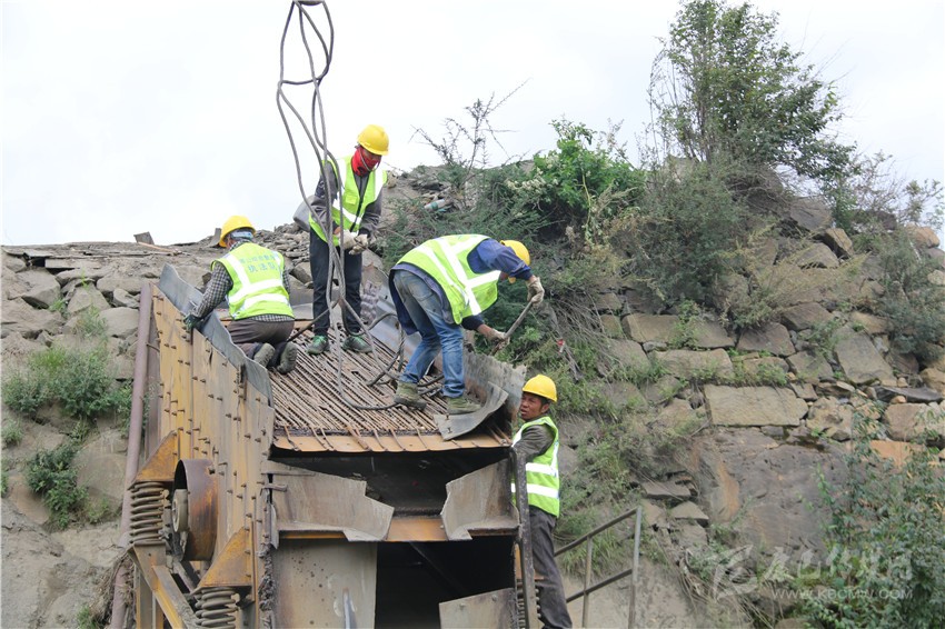 8月25日,塔公村采砂場早已停止了一切生產(chǎn)。記者在現(xiàn)場看到,起重機正將砂場里10多米長,非常笨重的傳送帶拆放在地上。數(shù)十名村民和工人一起,用挖機、吊車、氣割機等設(shè)備將生產(chǎn)砂石的設(shè)備進行拆解,拆除的生產(chǎn)設(shè)備、機械零件整齊地擱置一旁,砂場拆除工作正在安全有序進行。望著曾經(jīng)給村民帶來巨大效益的設(shè)備被拆解在地上,塔公村村主任伍金多吉流下了傷心的淚水。