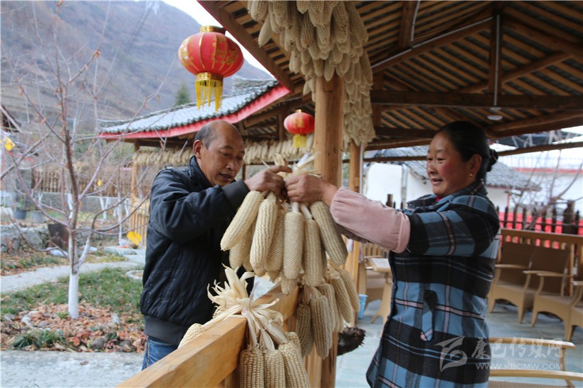 趙朝勇與丈夫正在掛玉米。本網(wǎng)記者 馬建華 攝