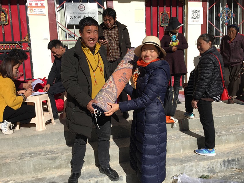 看著即將銷售一空的土豆,蓋玉鄉(xiāng)黨委書記白瑪降稱特意為援藏隊送來潔白的哈達(dá),表達(dá)感激之情。