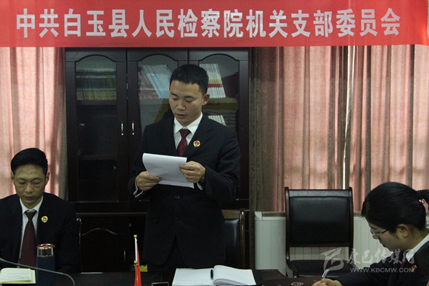 本網(wǎng)訊 近日,白玉縣人民檢察院黨支部召開接收預(yù)備黨員大會,討論了關(guān)于吸收秦偉同志為中共預(yù)備黨員的事宜。會議由該院黨支部書記王洪勇同志主持,除2名黨員抽調(diào)外出,該支部12名黨員、1名發(fā)展對象參加此次會議,2名黨外干部列席。