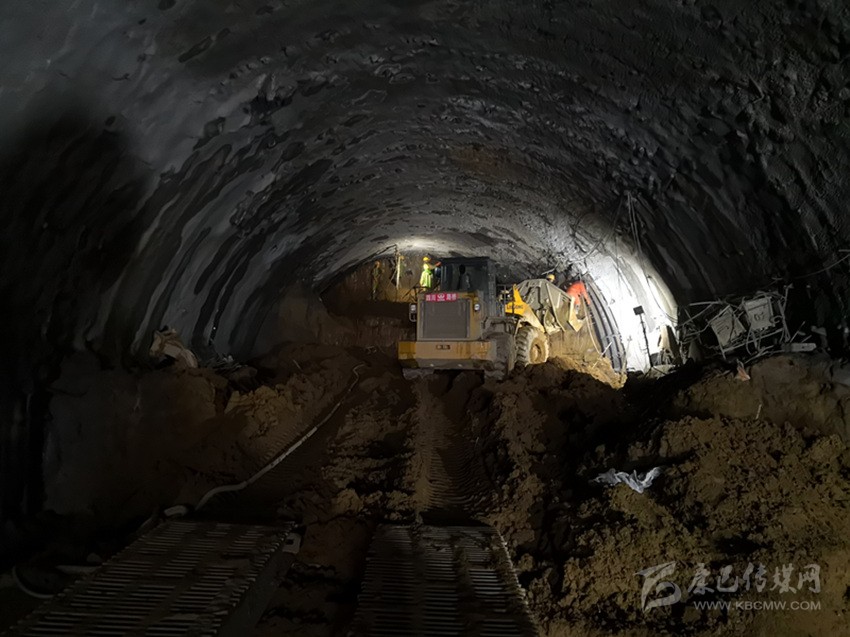 4月9日,記者走進(jìn)TJ2標(biāo)段已開挖成型的主洞,見到進(jìn)洞100米左右,工人們正在綁扎支護(hù)用的鋼筋。再前進(jìn)200米左右,一臺二襯臺車正在加固初步成形的隧頂。走上約20米的移動棧橋,就到了隧洞底端的掌子面,一臺挖掘機(jī)正在隆隆作業(yè),很快就堆起一座泥石小山。據(jù)工作人員介紹,由于土質(zhì)松散,從安全和質(zhì)量方發(fā),每天進(jìn)行兩個(gè)循環(huán)開挖,一天能完成2米左右的進(jìn)度。