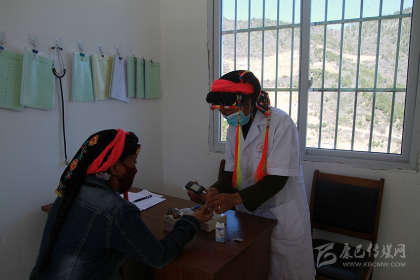 長(zhǎng)納村黨員活動(dòng)室外,一位婦女戴著口罩在曬太陽(yáng)??吹焦P者來(lái)了,連忙站起來(lái),笑著用嘉絨語(yǔ)向筆者打招呼。交談中筆者得知,她叫阿吉,今年54歲,前段時(shí)間由于血壓高,常常頭疼、頭暈,只能躺在床上。后來(lái),村醫(yī)來(lái)到她家,為她測(cè)量了體溫,并帶來(lái)了降壓藥,服藥后她的癥狀有了很大改善。她今天到村衛(wèi)生站是來(lái)檢測(cè)一下血壓,順便買(mǎi)一些抗感冒的藥物。當(dāng)筆者問(wèn)及村衛(wèi)生站醫(yī)生的情況時(shí),她告訴筆者,村衛(wèi)生站的這名醫(yī)生是一位醫(yī)術(shù)高超的醫(yī)生,也是一位值得信賴(lài)的醫(yī)生,更是一位讓人放心的醫(yī)生。