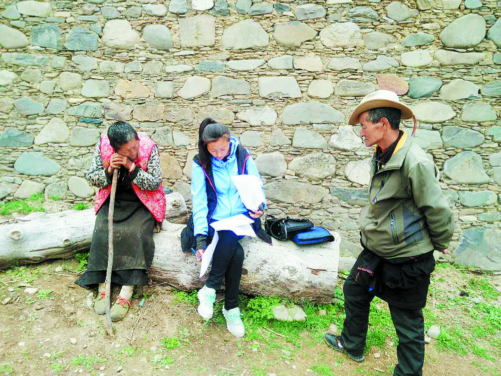 初到村里,澤仁曲忠和駐村干部挨家挨戶走訪。
