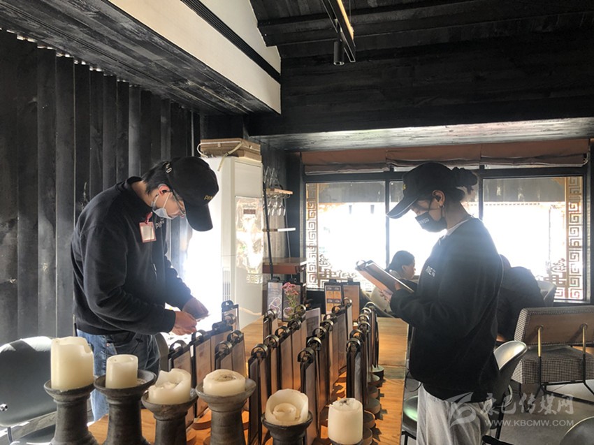 青棵餐吧的店員正在準備情人節(jié)套餐宣傳臺卡。