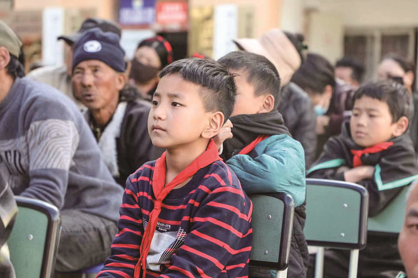 孩子們認(rèn)真聆聽(tīng)法治宣講。