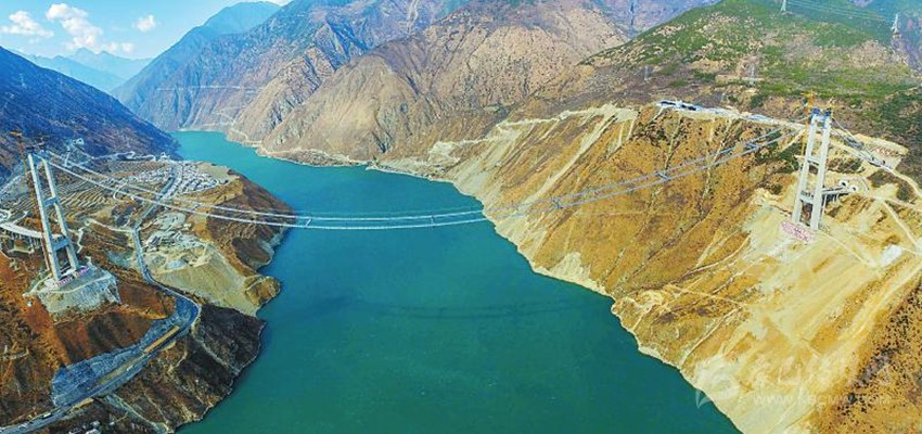 “今天施工的索股是特大橋上部構(gòu)造主纜承重體系的首根索股,其他索股的牽引將以之為基準?!迸d康特大橋總監(jiān)張義志說。為破解“川藏第一橋”的建設(shè)難題,建設(shè)單位與西南交通大學(xué)、武漢理工大學(xué)等高校、科研機構(gòu)聯(lián)合,進行技術(shù)創(chuàng)新和科技攻關(guān),目前已申報國家實用新型發(fā)明專利8項,預(yù)計全橋技術(shù)工藝創(chuàng)新將超過20項。