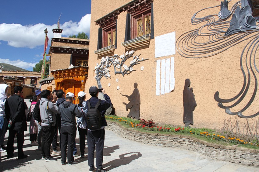 丹巴鍋莊在重要場合表演非常講究禮儀和裝束,男性要求戴狐皮大帽,穿金色、藏青色、繹紅色氌尼藏裝,并配有精細藏鄉(xiāng)裝飾,踏著藏靴,斜背嘎烏,腰懸銀質(zhì)佩飾,夏天可穿白色氆氌藏裝;女性按老、中、青年分別著裝,依鍋莊進展分別換上春、夏、秋、冬各色服飾,以展示其敬重與富有。女性一般頭頂繡花方帕,身著油綠、紫繹、赭紅、翠藍、藏青等色的水獺皮鑲邊的中長外套,下著百褶五色裙,腳踏藏靴,胸垂銀白嘎烏,掛著銀質(zhì)飾品(銀鏈、銀鈴鐺)和一串串紅珊瑚,頭飾碧玉發(fā)箍、藍寶石、黃寶石等;年輕姑娘則以華麗為飾,顯得活潑而艷麗。
